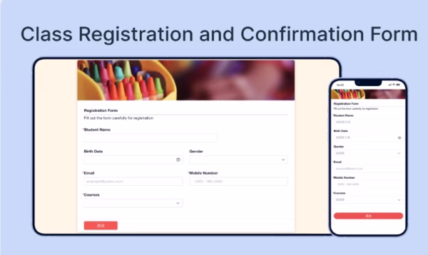 Install this free class registration and confirmation form to make registering for classes a breeze with Jodoo.