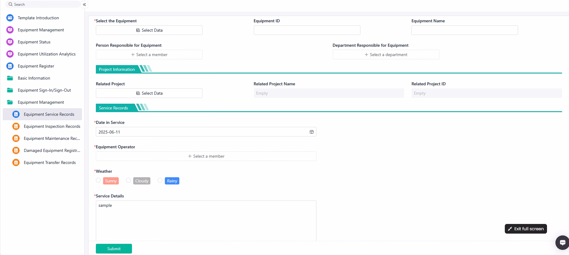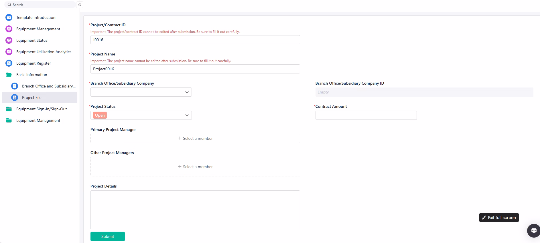 - Site Entry and Exit Management. Functionalities to manage equipment entry and exit at construction sites, ensuring proper documentation, accountability, and tracking of asset movements.