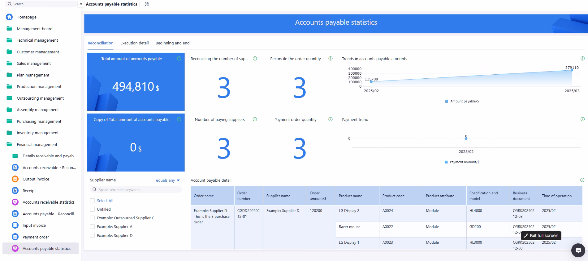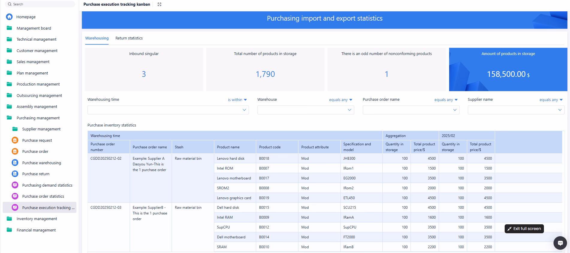 • Procurement/sales order execution tracking management