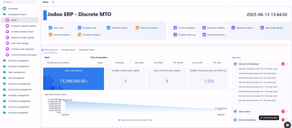 An ERP system designed for discrete manufacturing and order-based customized production, suitable for long lead-time production models (with a few standardized products that are customized).